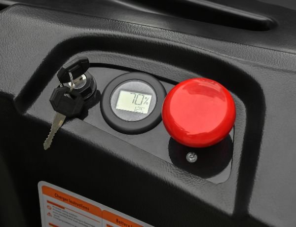 Equipped with an emergency stop button for immediate power-off in emergencies, ensuring vehicle safety.