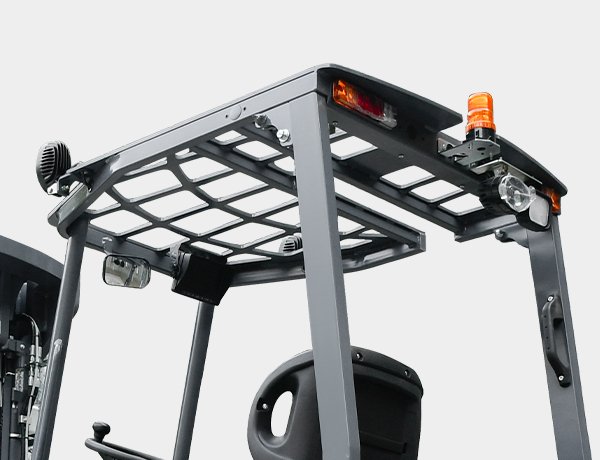 • LED lights, HD cameras, warning systems, and a robust overhead guard ensure safe operation even in low-visibility environments.