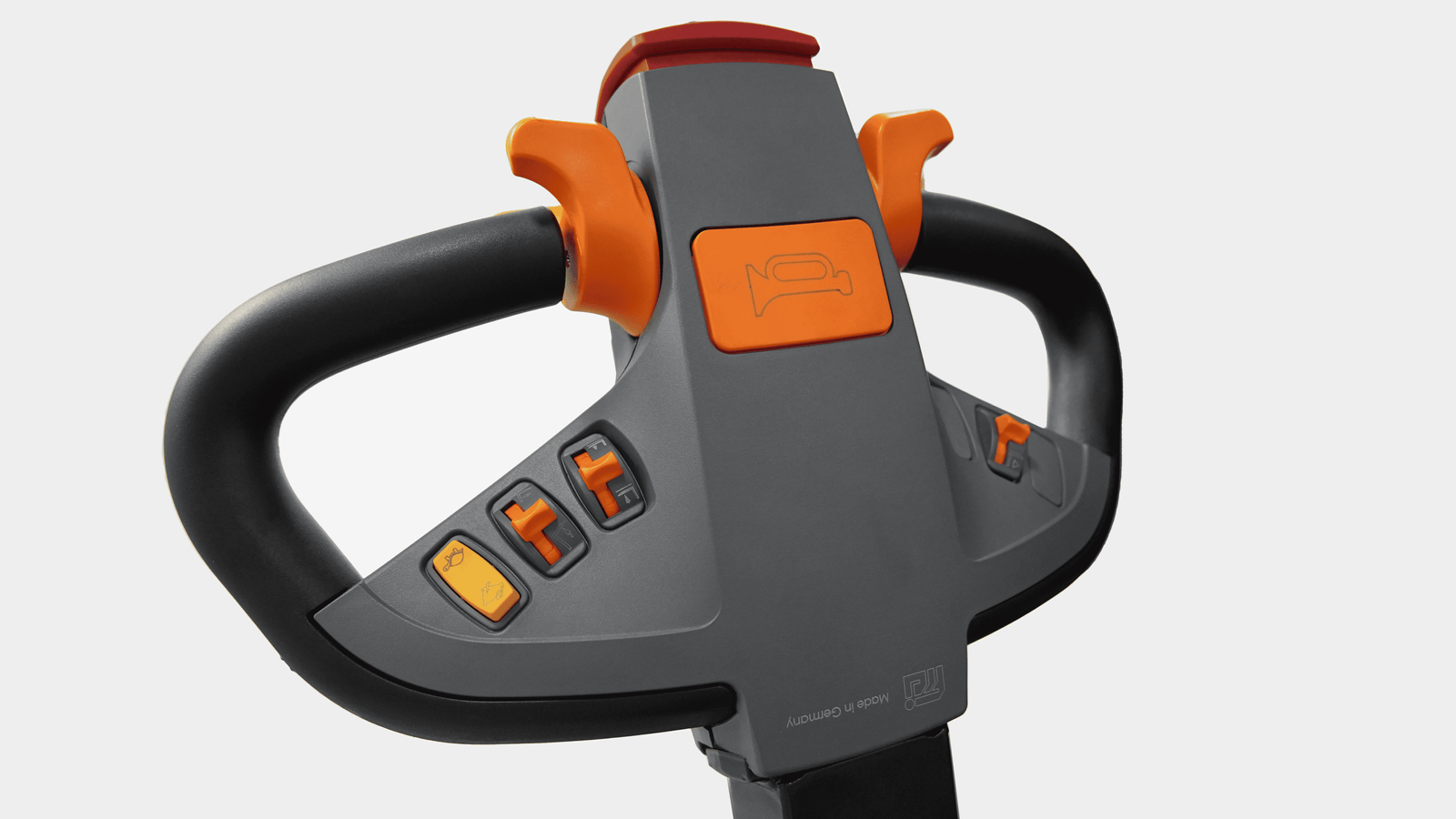 The emergency reverse buttons (Belly button) on the handle head can effectively prevent the driver from being hurt when running backwards.